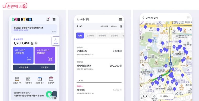 기본 사용처의 경우 서울시를 예를 들면 내 연 매출 30억 원 이하의 소상공인 가맹점에서 사용이 가능하다. 이는 골목 상권 활성화를 위한 취지로 보인다.