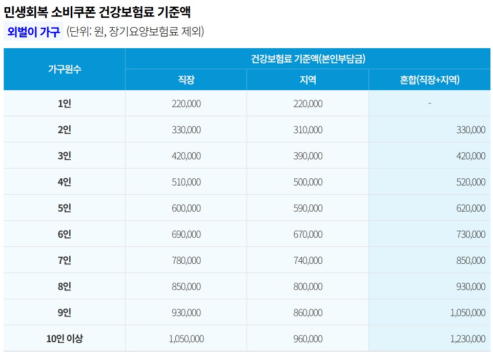 이번 소비쿠폰은 건강보험료 기준액을 통해 선별하며, 외벌이 가구와 다소득원(맞벌이 등) 가구에 따라 기준이 다르게 적용된다. 예를 들어, 외벌이 1인 가구의 경우 건강보험료 본인부담금 기준액이 220,000원이며, 다소득원 2인 가구의 경우 420,000원입니다. 본인이 지원 대상에 해당하는지 궁금하다면 ‘국민비서 알림서비스’를 신청하여 대상 여부와 지급 금액, 신청 기간 등을 안내받을 수 있다. 또한, 9월 22일 오전 9시부터는 온라인(카드사 홈페이지·앱, 건강보험공단 홈페이지·앱 등)이나 오프라인(동주민센터, 카드 연계 은행 영업점)을 통해 직접 대상 여부를 확인할 수 있다.