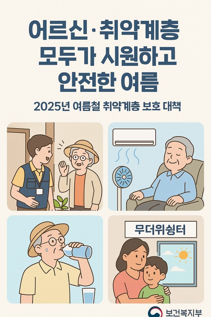 여름철 폭염과 태풍, 장은 장마로 힘든 시기, 특히 어르신이나 취약계층 분들께는 더 조심해야 할 때이다. 보건복지부가 2025년 여름철 취약계층 보호 대책을 발표했다. 어떤 도움을 주는지 쉽게 정리해 보자. 복지 사각지대 없이 모두가 시원하고 안전한 여름을 보내도록 돕는 정책을 한번 살펴 보자.