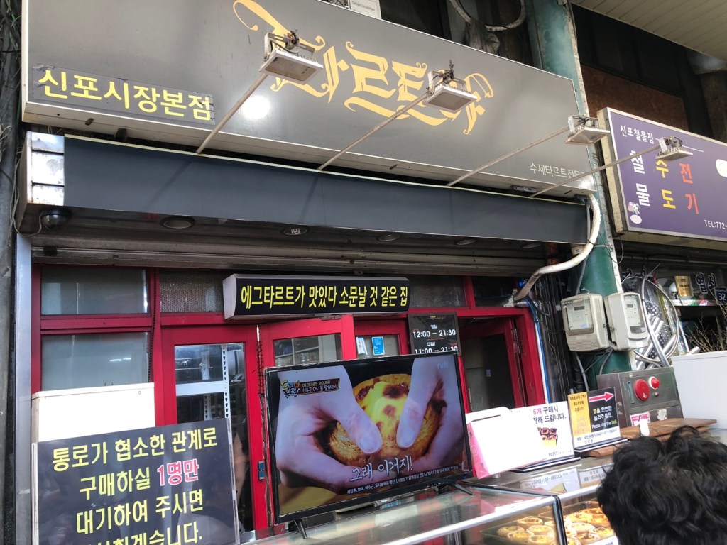 닭강정 골목 끝자락에 위치한 포르투갈식 에그타르트 맛집으로, 주말에는 긴 줄을 서야 할 만큼 인기가 높다. 일반 에그타르트보다 1.5배 정도 큰 크기에 바삭한 파이지와 부드럽고 달콤한 필링이 일품이다. 오리지널 외에도 크림치즈, 초코, 옥수수 등 다양한 맛을 즐길 수 있다.